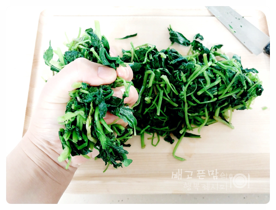 그리고 데친 나물을 몽땅 건져 줍니다.