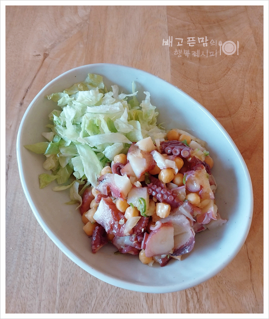 소스에 버무린 병아리콩 문어를 함께 담아 줍니다.