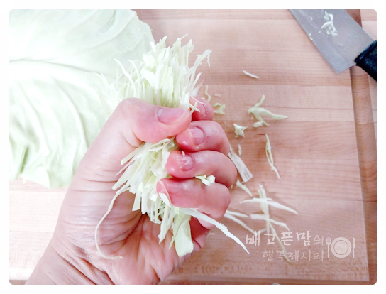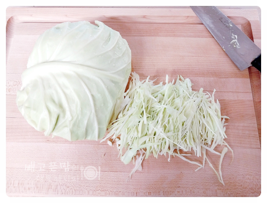 양배추 양껏 넣어 만든 샐러드를 얇디얇은