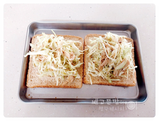 한 장 같은 통밀 식빵 두 장으로 먹었습니다.