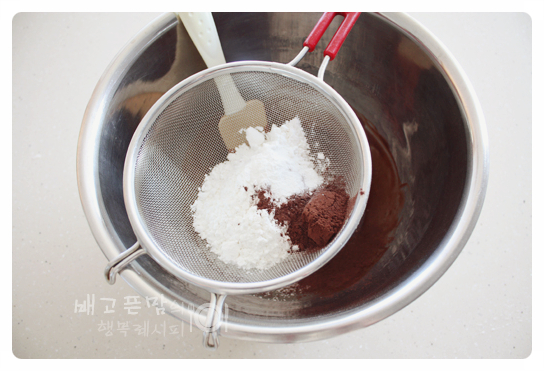 박력분 50g,코코아가루 1 큰 술, 베이킹파우더 1/2 작은 술, 소금 1 꼬집,