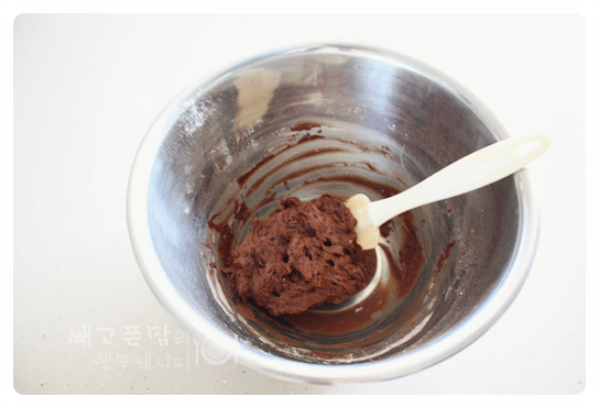 그리고 초콜릿을 넣고 고르게 잘 섞어 줍니다.
